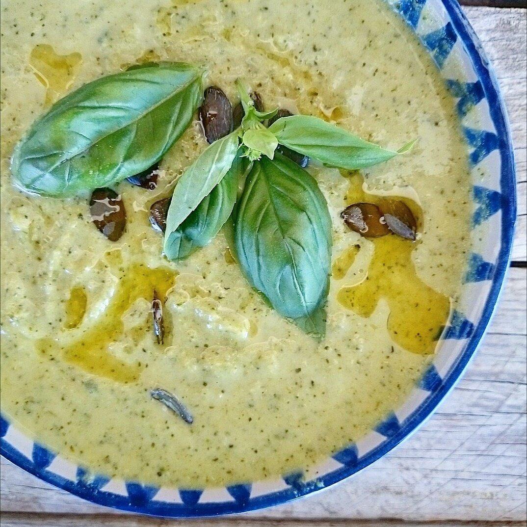 Deliciosa y aromatica crema de bimi al jengibre con aroma de limon y albahaca.