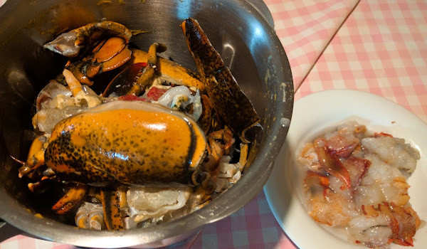 Si quieres compra un tercer bogavante y utilízalo para decorar cada plato con un trozo que pondrás pelado en cada plato (simplemente salteado como podrás ver en la receta)