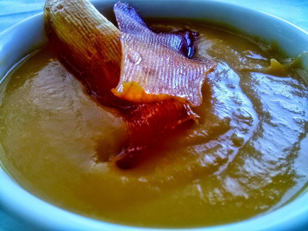 Sirve la crema caliente con los chips encima.