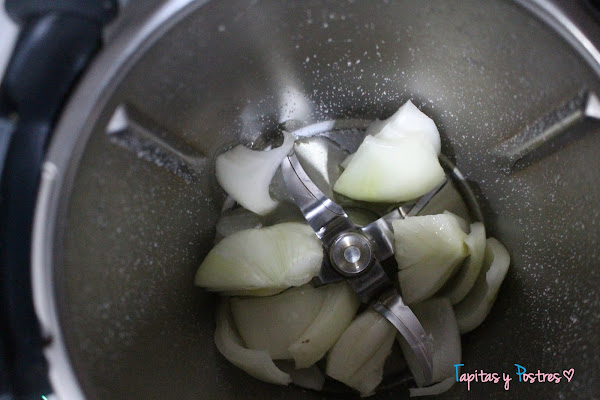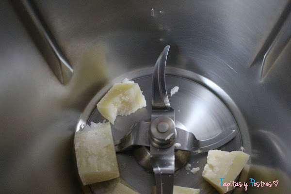 Primero picamos el queso en la thermomix 10 segundos a velocidad 9 y reservamos.
