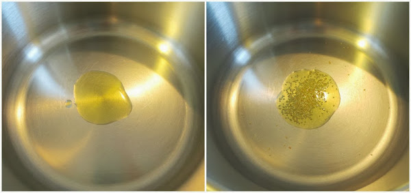 4. Pon la olla al fuego. Yo he utilizado una olla rápida aunque puedes utilizar una normal, sólo que la cocción tardará un poco más. En la olla echa un chorrito de aceite (como ves en la foto tampoco es necesario mucho) y cuando esté caliente añade 1 ajo picado o una cucharadita de ajo en polvo.