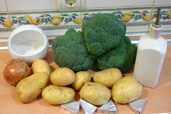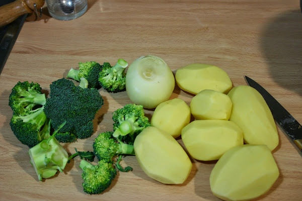 bueno, pues pelamos las patatas, la cebolla y trozeamos el brocoli