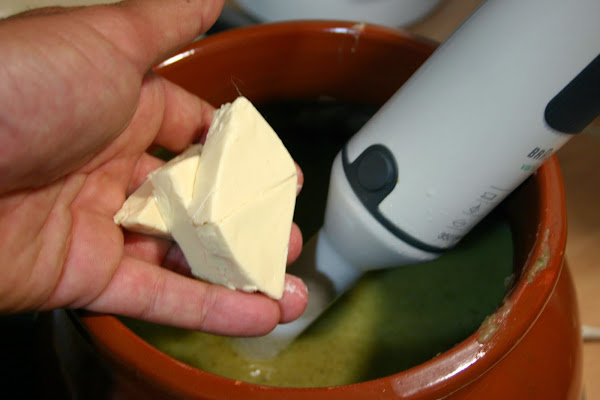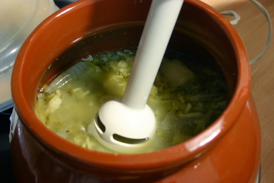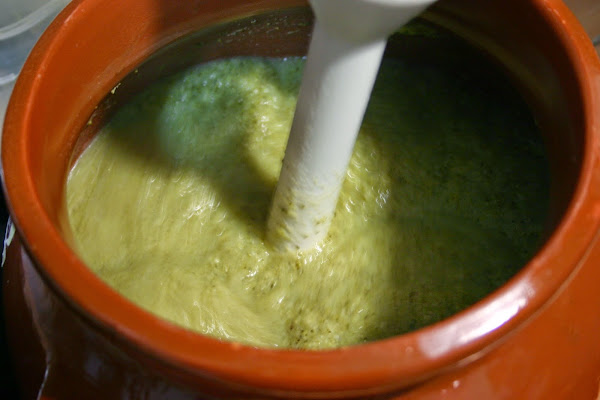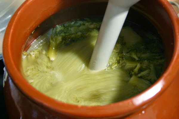 cogemos la batidora, una cosa, os recomiendo que si no teneis mucha experiencia en ver si es mucha o poca agua, quiteis siempre un poco de liquidos, ya que si se lo batis y os queda aguado no tiene solucion, pero si os queda espeso con que vayais añadiendo es suficiente, por eso en los guisos siempre se cubren los alimentos y no se llena las ollas hasta arriba, para que no quede muy liquido.
