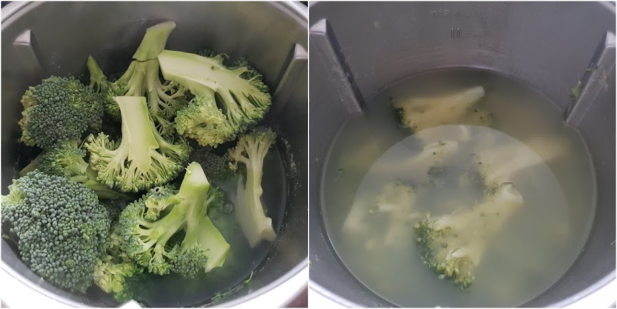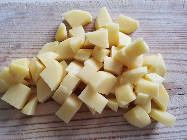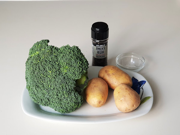 1. - Y tan sencillo como trocear el brócoli y las patatas peladas. Cuanto más pequeños los trozos, menos tardará en cocer.