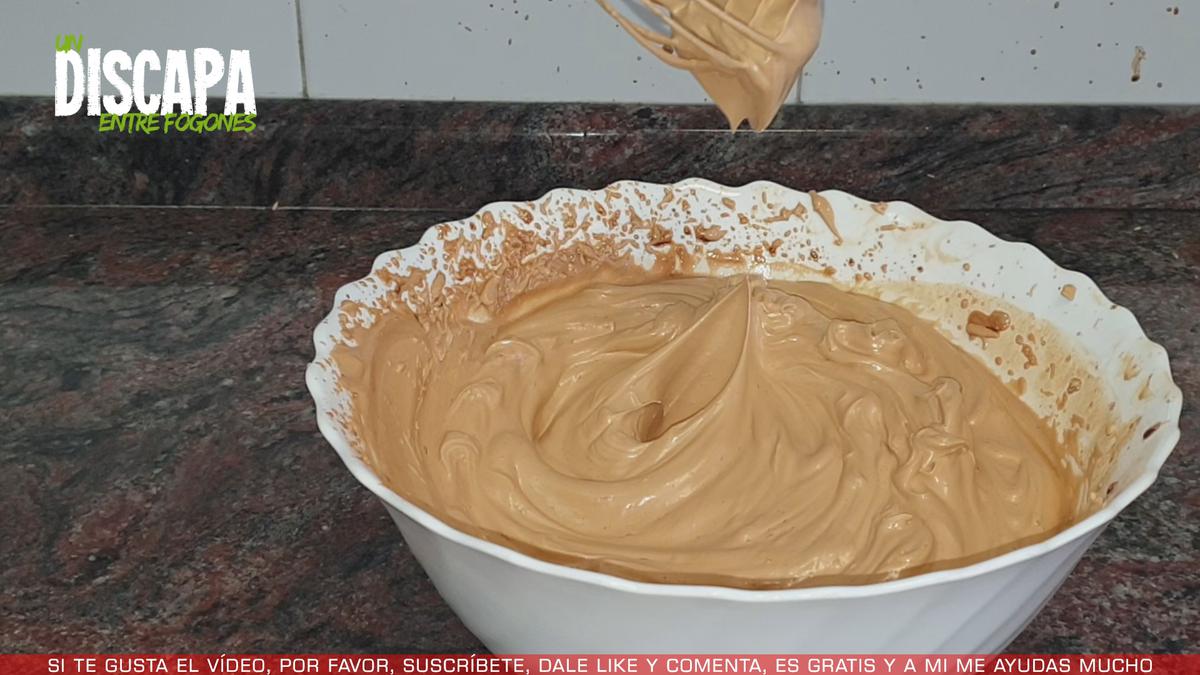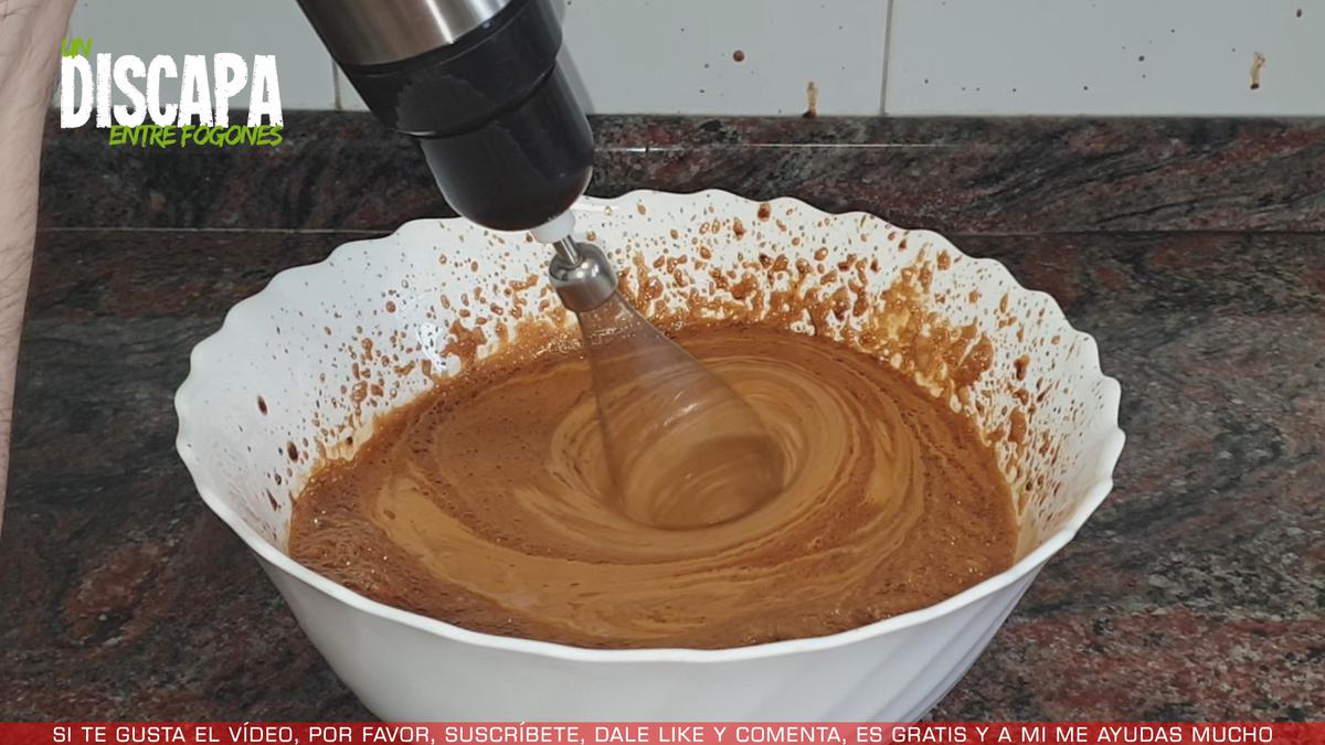 2 Y poco a poco veremos como va espesando la crema. Batiremos hasta conseguir el espesor que más nos guste. Yo he tardado unos 4 o 5 minutos en conseguir esta textura.