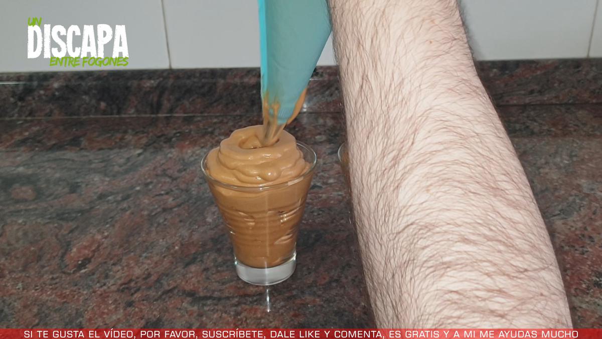 4 A continuación, pasamos la crema a una manga pastelera y procedemos a llenar los vasos donde lo vamos a servir.