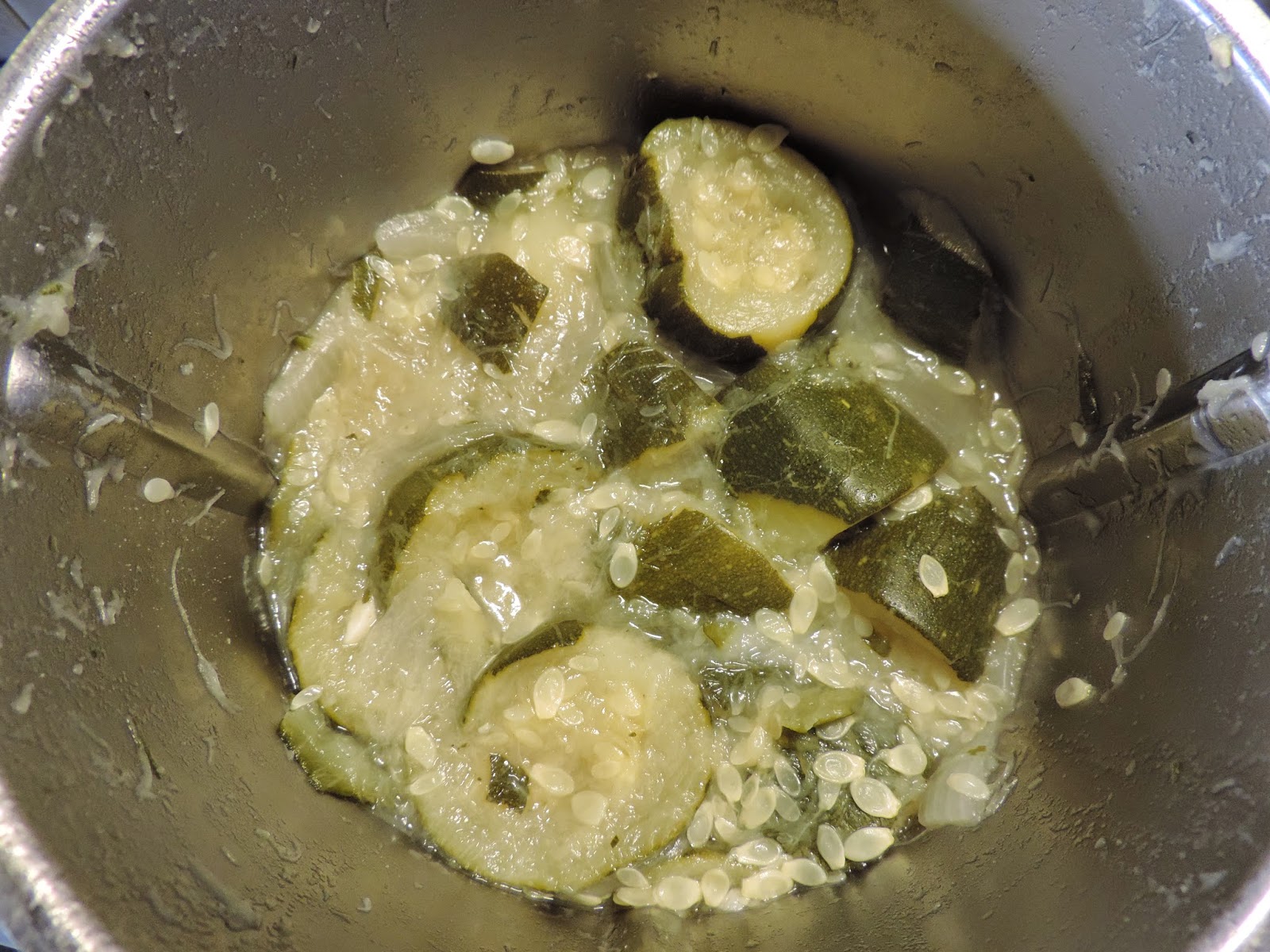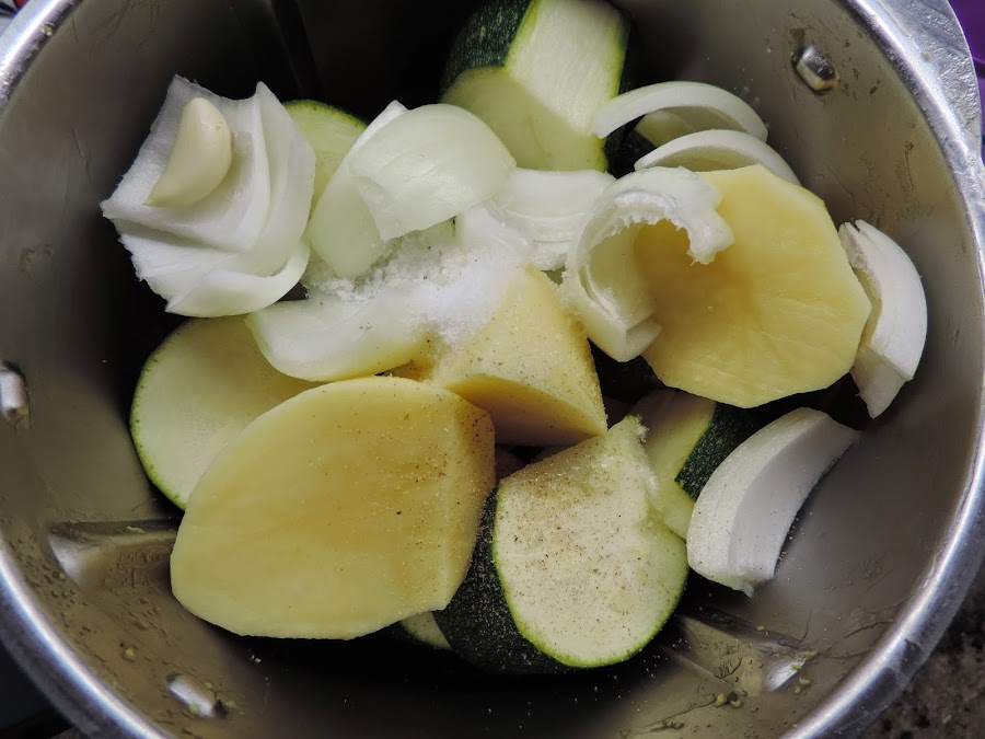Esperamos a que se enfríen un poco y lo trituramos todo 1 minuto, velocidad progresiva 7-10.