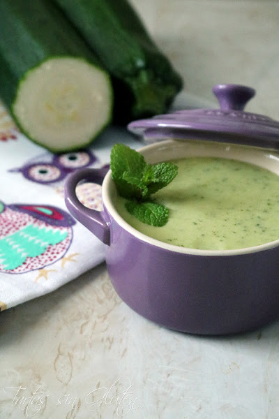 Lava y trocea los calabacines , añádelos al vaso junto la patata troceada, el cacito de caldo vegetal y el agua. Programa 20 minutos, temperatura varoma, velocidad cuchara.