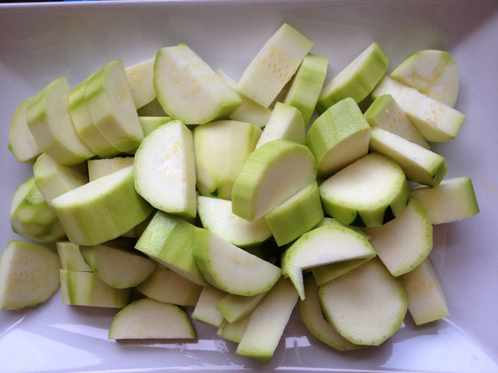 5 Pelamos los calabacines y los cortamos en cuadrados ..