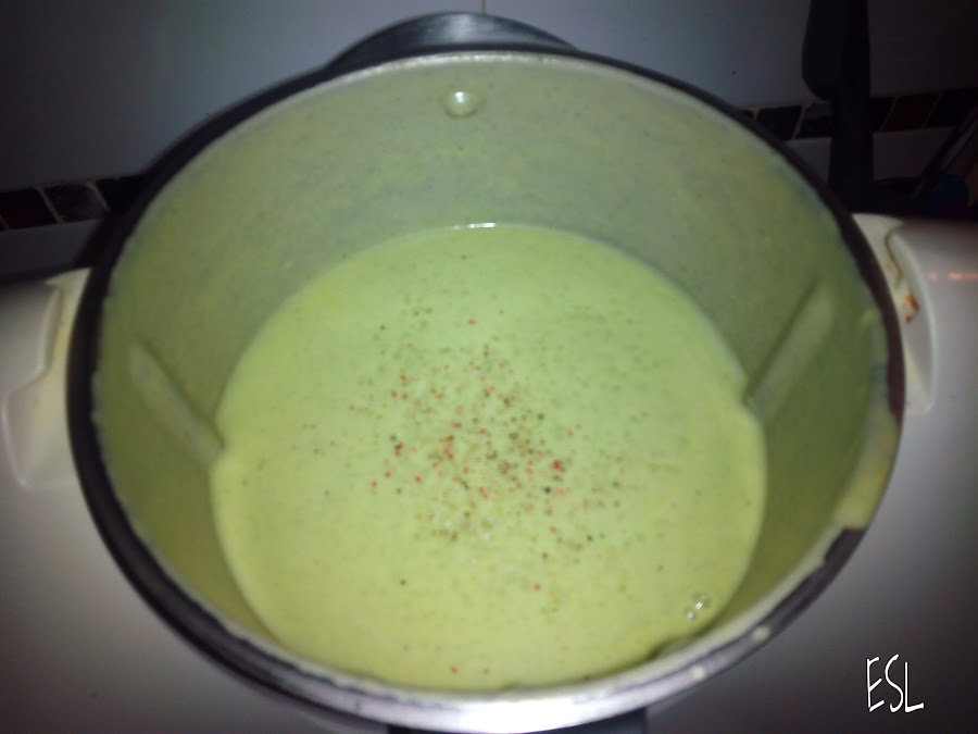 Agrega los quesitos y tritura 2 minutos en velocidad progresiva 5-10. Corrige el punto de sal, añade un poco de pimienta recién molida y listo.