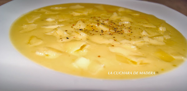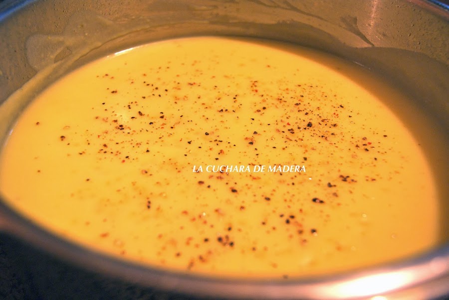 Cuando las papas están hechas, lo pasamos todo por la batidora;como ven en la foto,no debe ponerse mucha agua en el caldero, lo justo para cubrir ya que así quedará cremosa