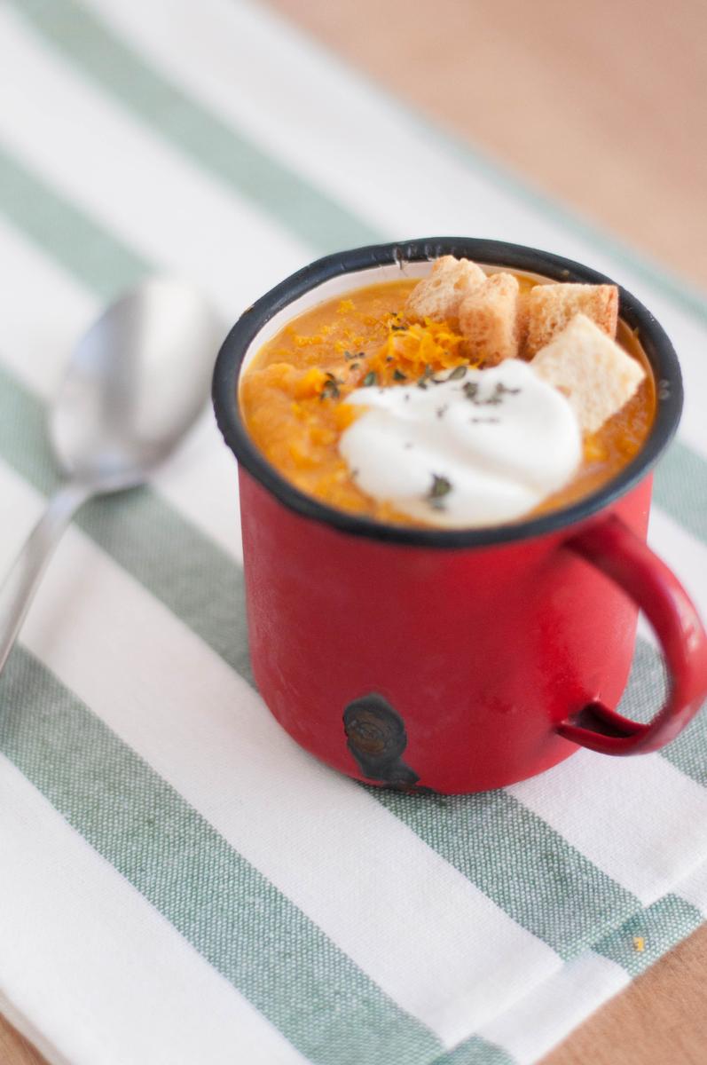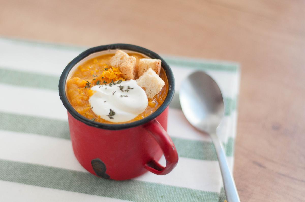 Hoy quiero traeros una receta de crema de verduras con un sabor diferente. Por un lado las verduras de este plato irán asadas y no cocidas o rehogadas como suele ser habitual. La calabaza, la cebolla y la zanahoria asadas, aportarán un sabor y una textura totalmente diferente. Pero esta crema cuenta además con otro ingrediente que le dará su punto de sabor, la naranja. La combinación de todas las verduras, la naranja y el aromático tomillo limonero, hacen un conjunto de rechupete.