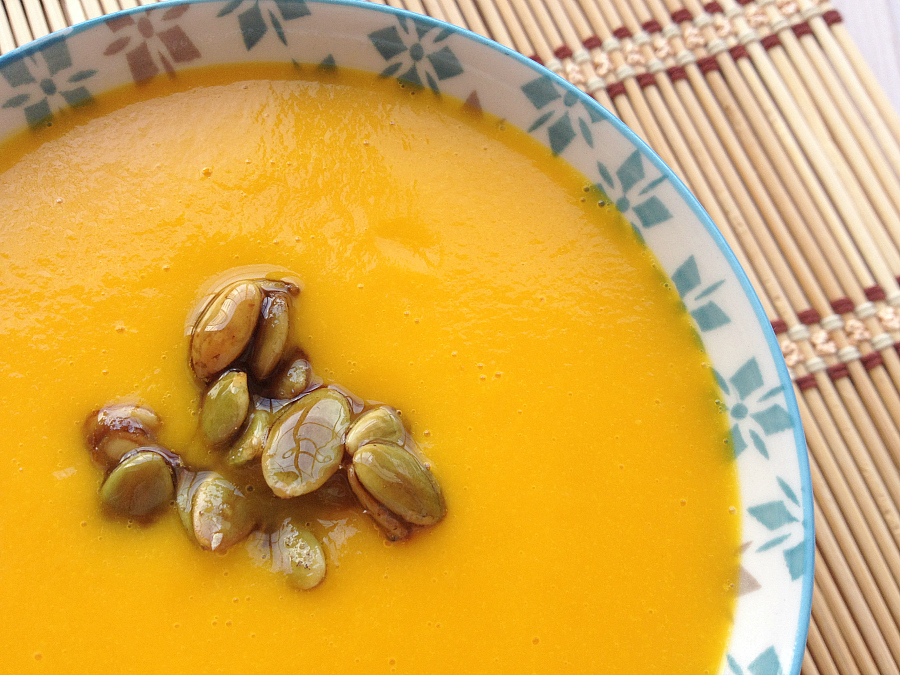 5. Servimos con unas semillas de calabaza caramelizadas u otra decoración al gusto.