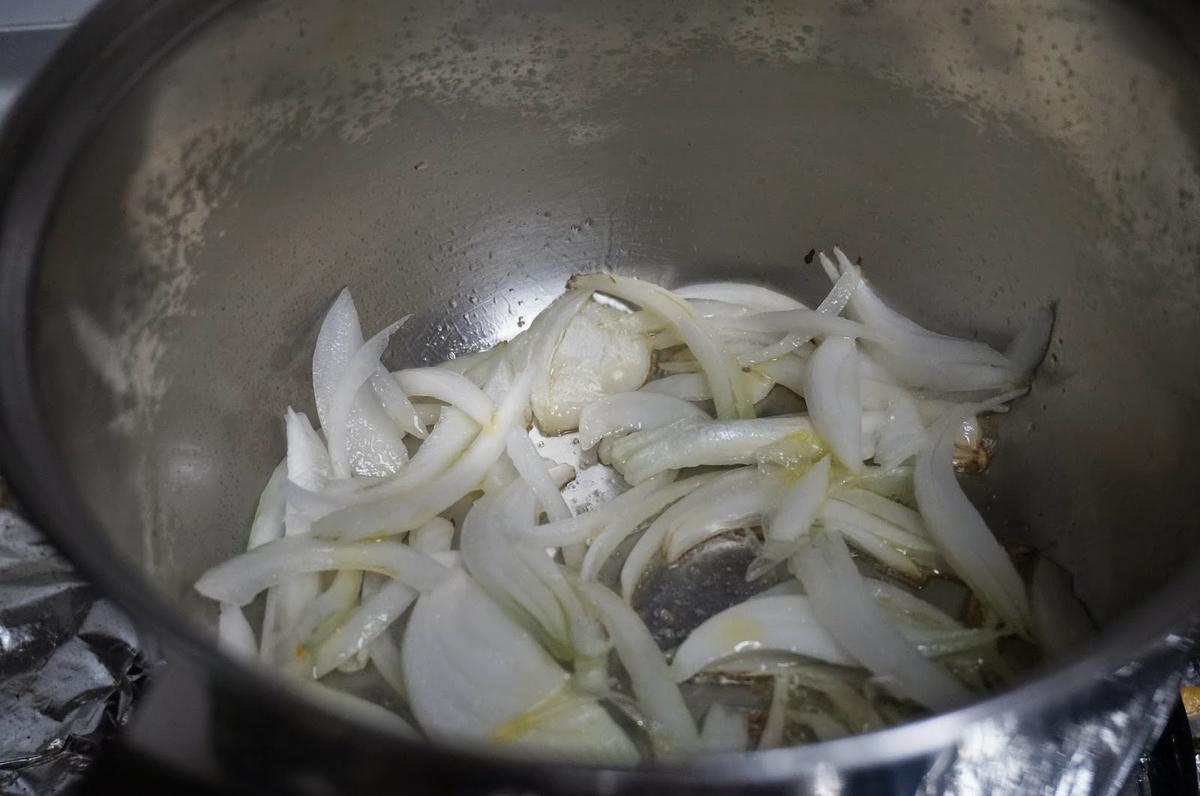 Pondremos a calentar una cazuela con un chorrito de aceite, echaremos la cebolleta picada, la dejaremos hasta que empiece a tomar color.