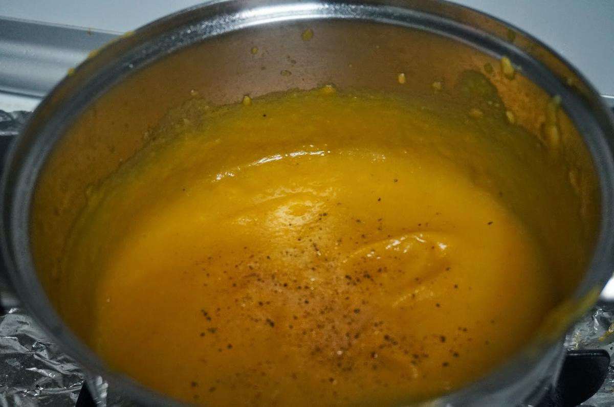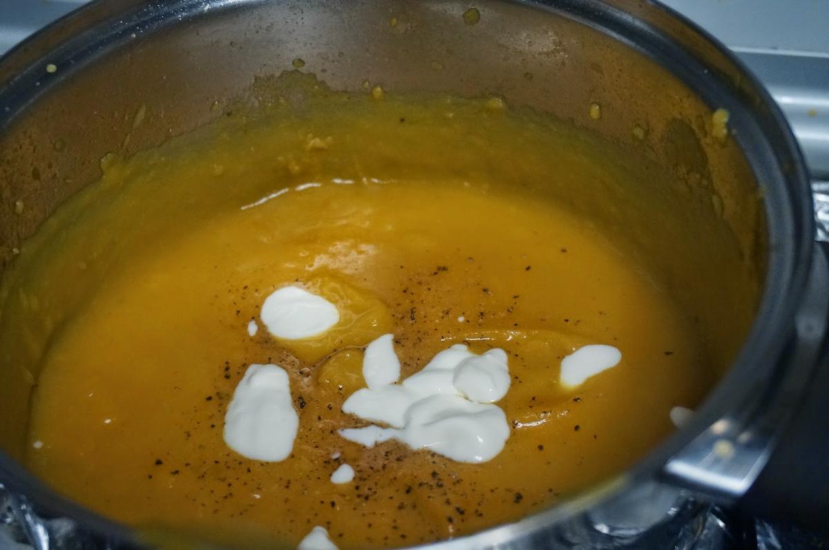 Lo probamos de sal y pimienta y le pondremos un poco de nata (crema de leche) líquida, 6-7 cucharadas.