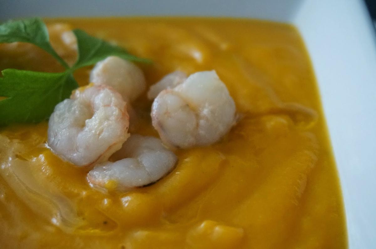 Esta semana os traigo una receta muy sencilla, una crema de calabaza con gambitas. Esta muy buena y con estas lluvias que tenemos, ya apetecen estos platos, parecía que no iba a llegar el otoño.