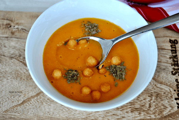 Sirve la crema de calabaza con los garbanzos crujientes espolvoreando perejil picado por encima.