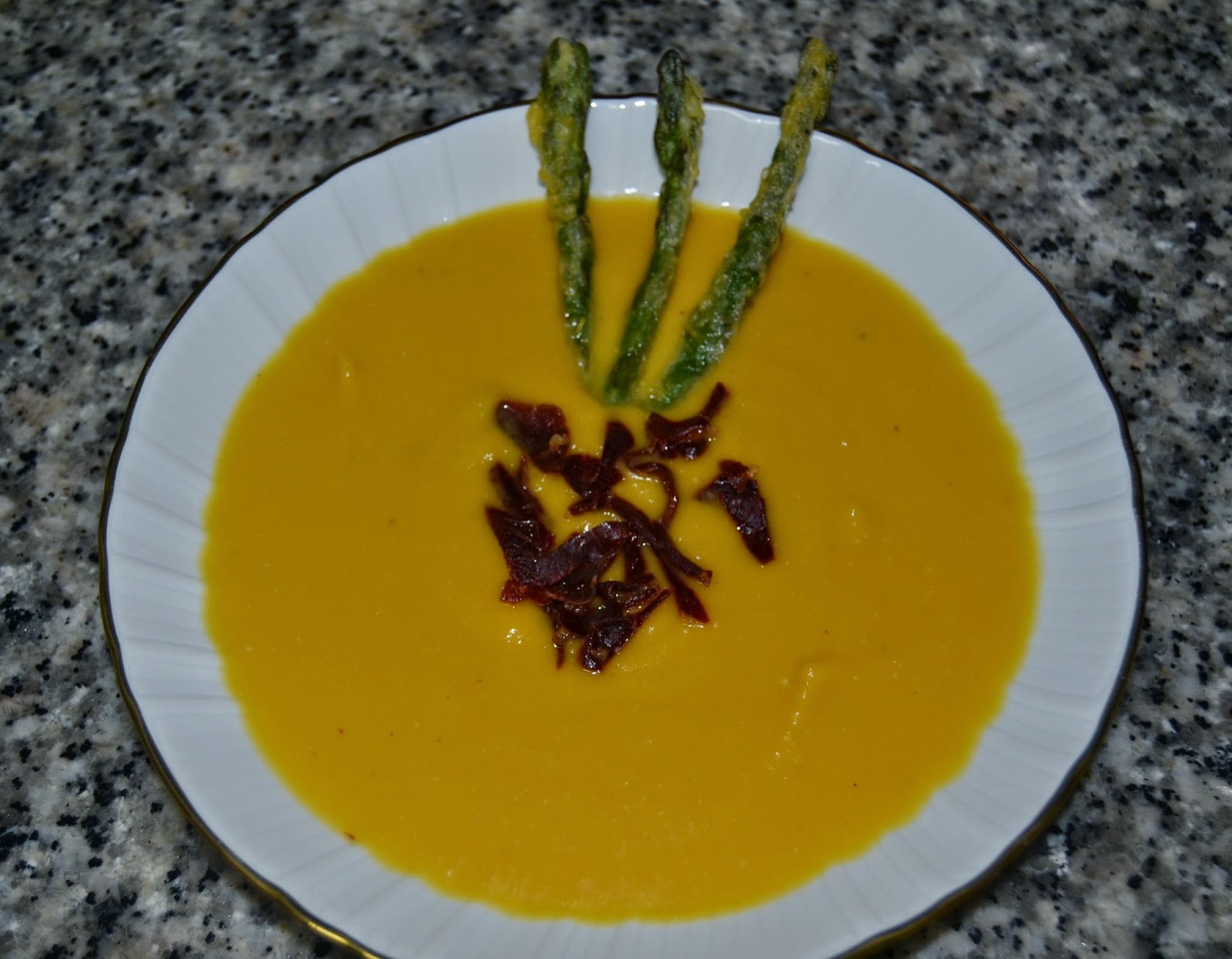 Hoy he preparado esta crema con la primera calabaza que hemos cogido del huerto, creo que tengo mucha suerte el poder comerla cosechada por nosotros mismo ya sabemos que hoy en día tenemos en cualquier frutería diferentes clases y de mucha calidad, pero el sabor como el de casa no es el mismo, supongo que estáis de acuerdo conmigo,