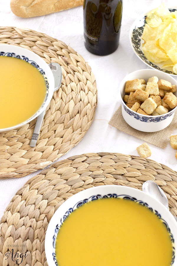 El viento es aire en movimiento hasta ahí claro y necesario, pero es que una cosa es moverse y otra bien distinta es agitarse, agitarlo todo y agitarme a mi que no he pegado ojo en toda la noche. Las palmeras que las veo delgadas y altas y estoy calculando a ver cuánto duran las pobres en pie. Las persianas con un ruidaco que te da ganas de emigrar al Polo que sea con tal de no oírlas. Así que con este panorama he decido encerrarme en casa el finde y volver a preparar la crema de calabaza, manzana y jengibre que preparé en Nochebuena y les gustó tanto a todos.