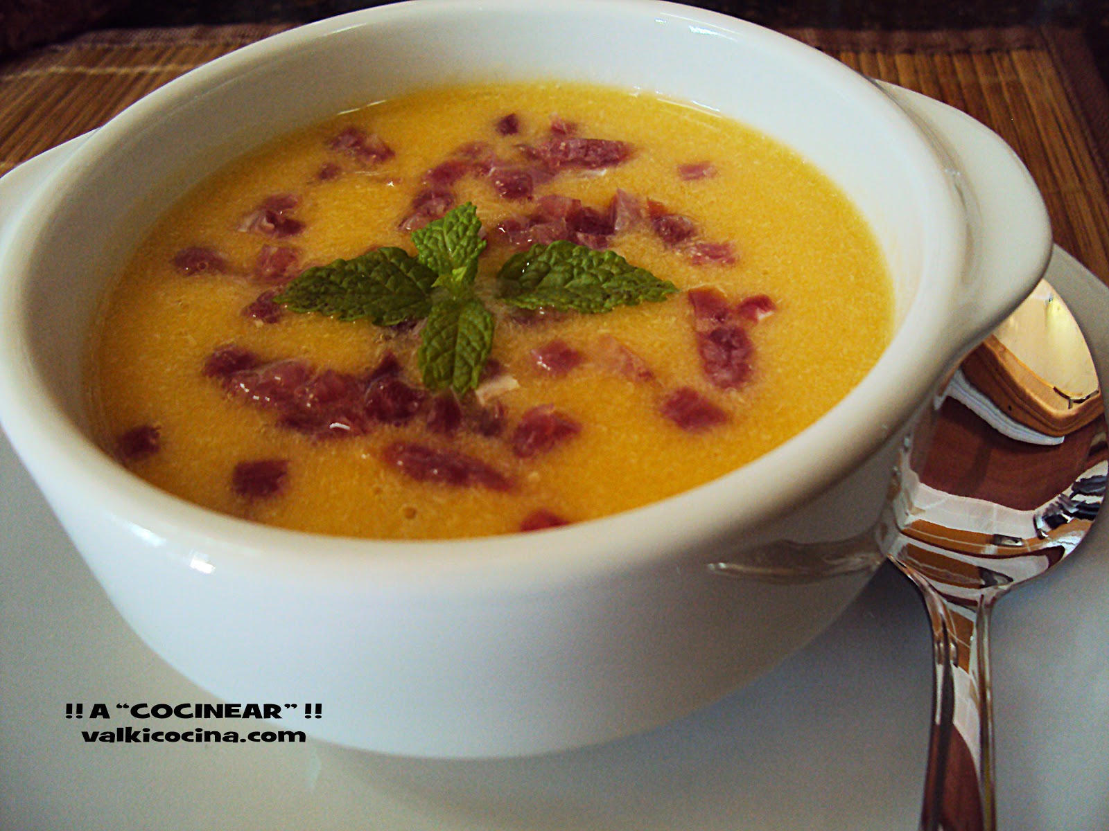 Añade si quieres hacerla más apetitos unos "daditos" de jamón y unas hojas de hierbabuena.