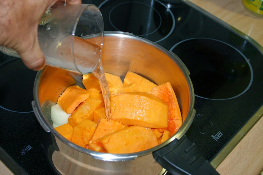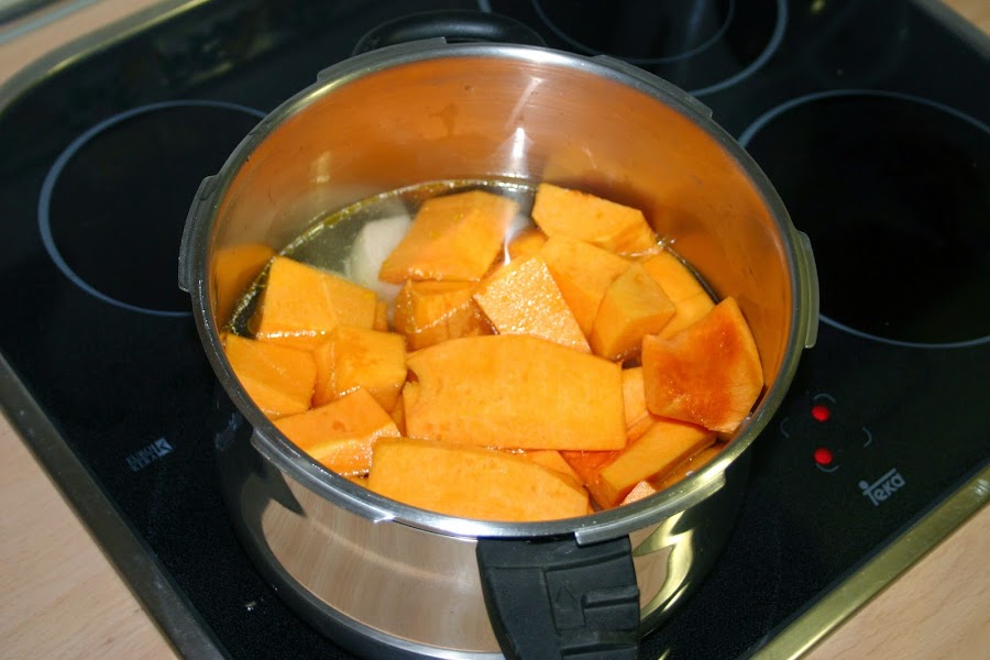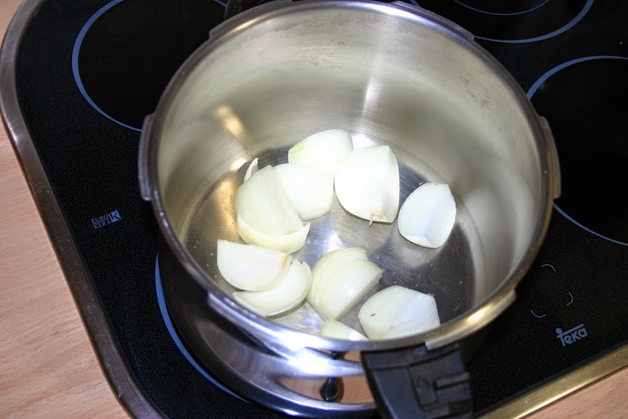 pero sin llegar a cubrir, por que es mejor que quede espeso y añadir agua que no que quede liquido y no poder hacer nada. lo llevamos a ebullicion a fuego alto y cuando hierva lo bajamos a fuego medio