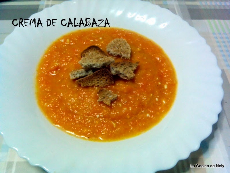 Ponemos un poco de mantequilla en la olla y doramos la calabaza, una vez dorada añadimos la cebolla y la zanahoria doramos un poco y añadimos el caldo de pollo y salpimentamos.