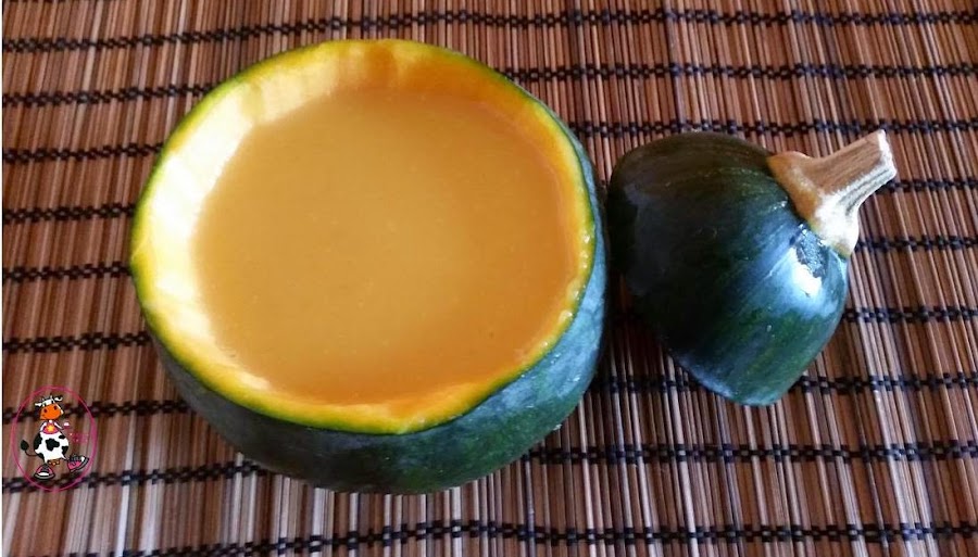 Pasado unos 20min batimos todo y hacemos una crema. Añadimos la crema dentro de la calabaza que tendremos bien lavada. Servimos y lista para comer.