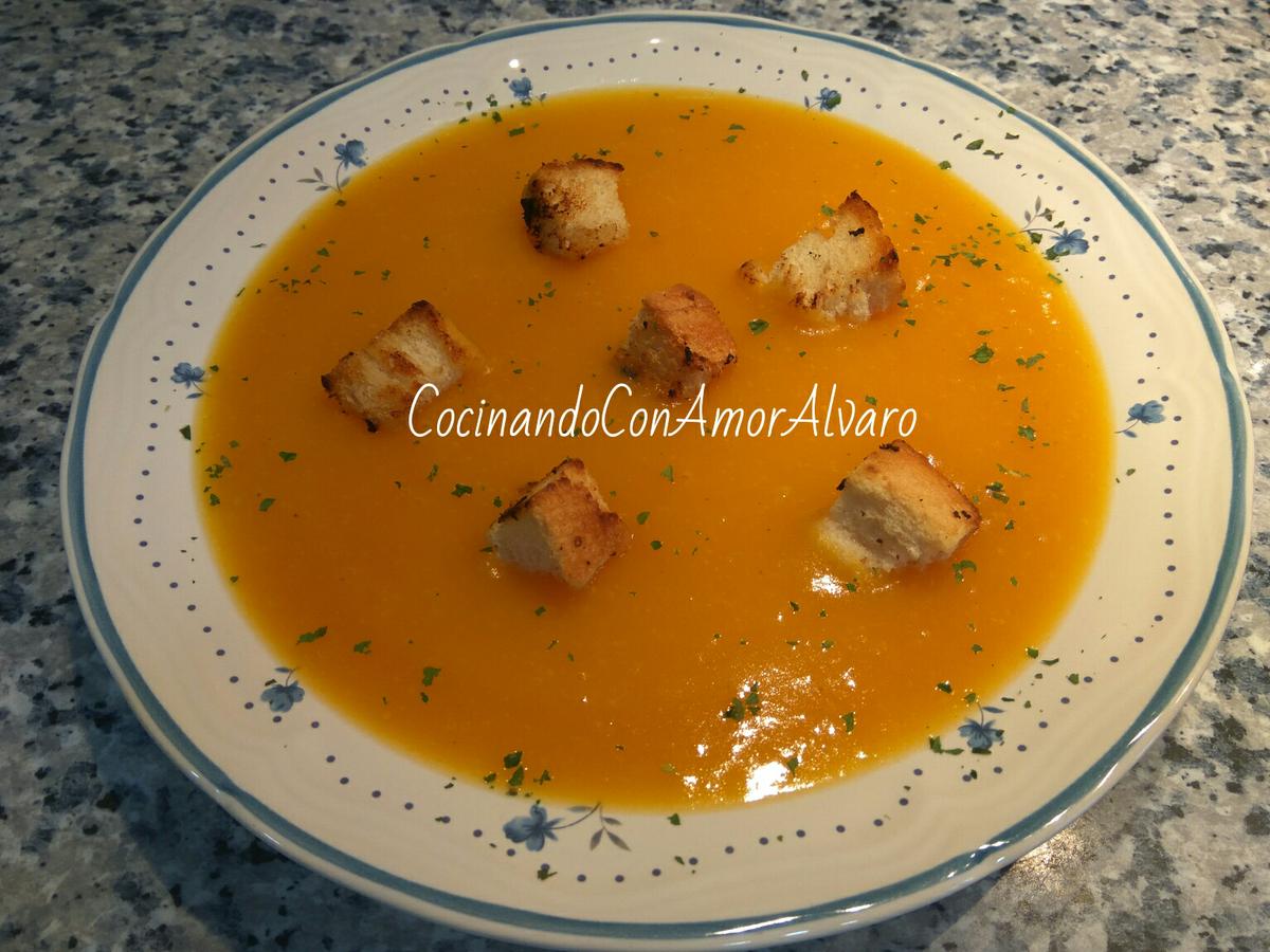 Servimos la crema en un plato, y decoramos con perejil y los picatostes de pan tostado, igual que en la foto.