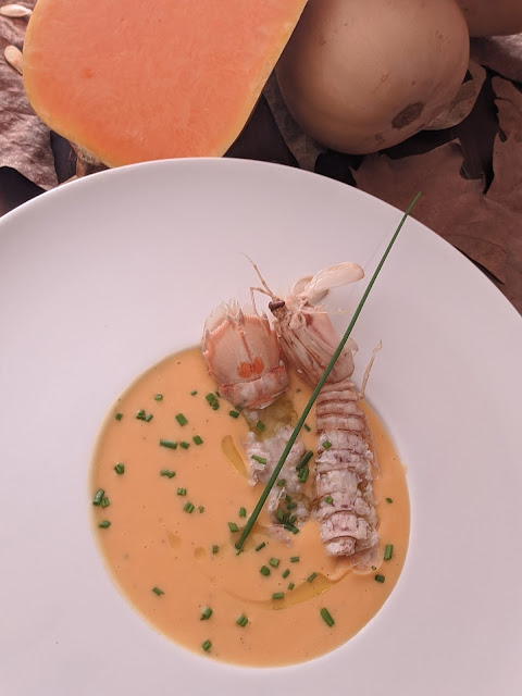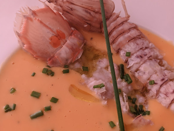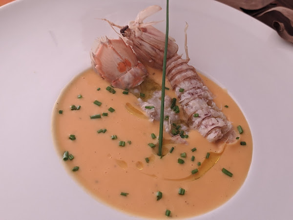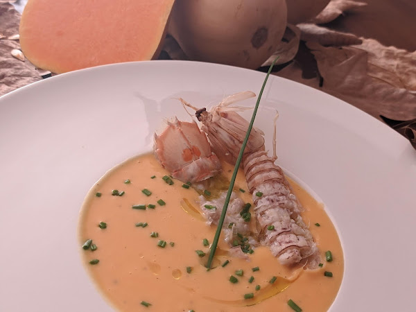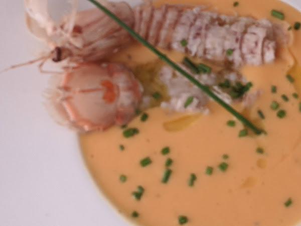 Adornar con cebollino y emplatar con las galeras de sanlúcar de barrameda.