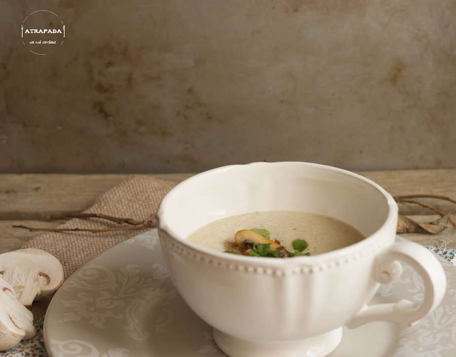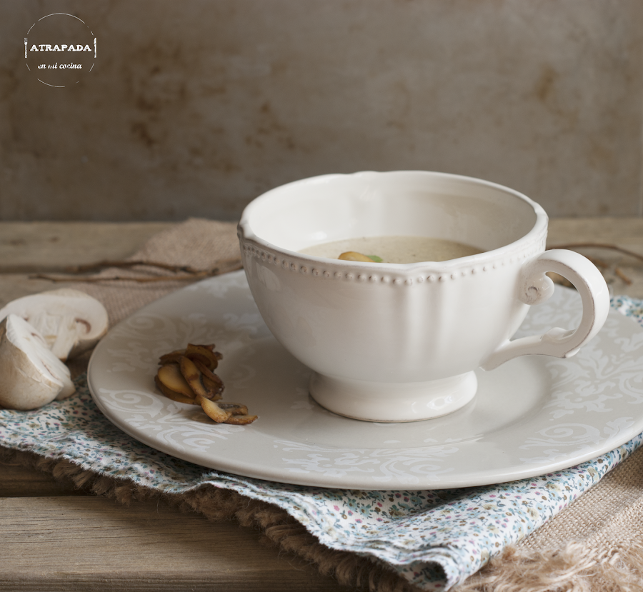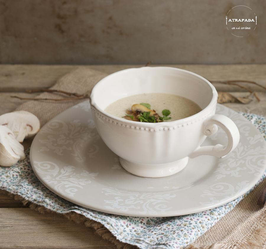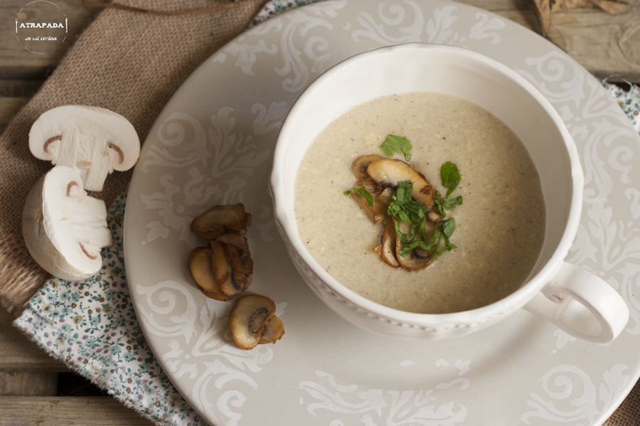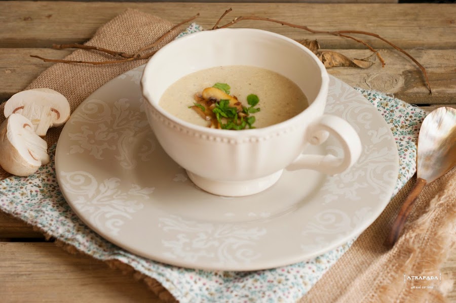¡Que ganas ya de coger la cuchara tenia!, aunque en casa no dejamos de hacer ni en verano los platos calientes, es verdad que no apetecen tanto como cuando llega el frío. Son reconfortantes para el cuerpo y te dejan como nuevo. Y si además son tan sabrosos como esta crema, mejor. Realmente me pareció deliciosa, y con un sabor intenso a champiñones. La hice tal cual la vi en una receta de una revista de cocina, aunque sugerían añadirle también un poco de jengibre rallado, yo no lo hice. La receta es muy sencilla. Lleva un fondo de caldo de pollo que es preferible que sea casero, un poco de nata (crema de leche), leche también y yema de huevo, lo que lo convierte en una crema muy completa.