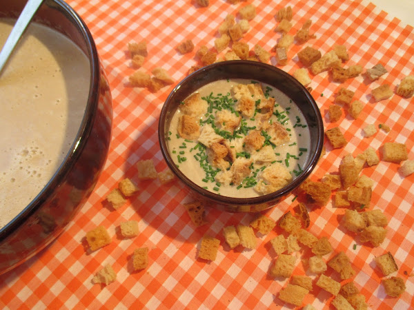 Batimos bien la crema y lista para servir, la puedes decorar con unos picatostes, un poco de cebollino picado y perejil también puedes añadirle un huevo duro picado o un huevo escalfado, un poco de jamón serrano o bacón....etc...Buen provecho.