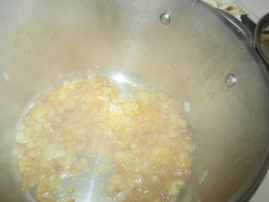 Picamos la cebolla y ponemos a pochar con un buen chorro de aceite de oliva