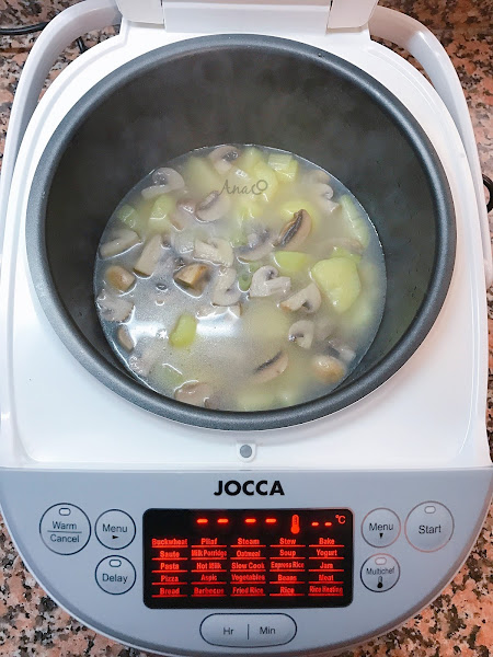 Hoy vamos a preparar una Crema de Champiñones, aunque esta vez de forma diferente ya que he usado para ello el robot de cocina de JOCCA, una olla eléctrica con múltiples funciones, con posibilidad de programar y muy fácil de limpiar. Simplemente preparas los ingredientes, los metes en el robot, lo programas y listo.