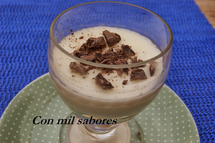 Una vez comience a hervir retiramos del fuego y distribuimos en los recipientes que queramos utilizar. Tapar con papel de aluminio la superficie hasta que se enfríe para que no forme una capa dura por encima. Meter en la nevera una vez frío y decorar con trocitos de chocolate negro antes de servir.