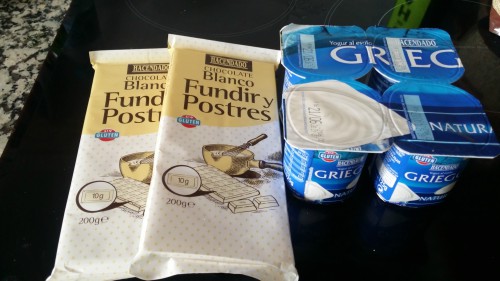 - Sacar los yogures de la nevera para que no estén tan fríos a la hora de mezclarlos con el chocolate caliente.