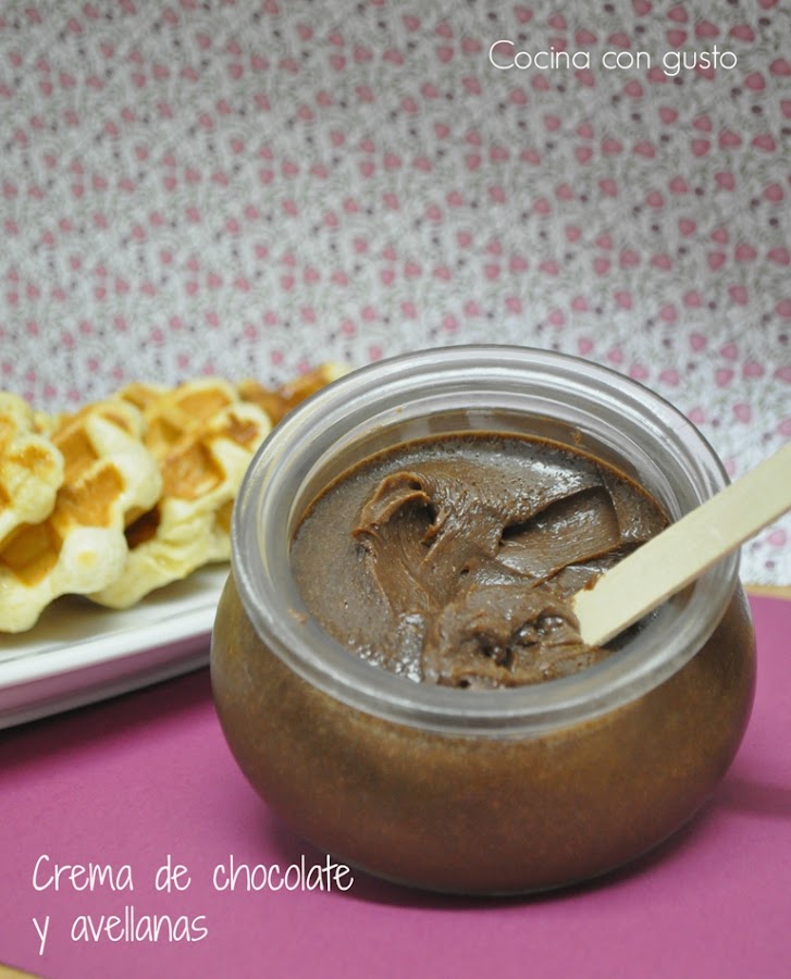 Teníamos pendiente la receta que nos propuso Bily hacer algo con el chocolate como ingrediente principal. Así que pusimos las cabecitas a pensar y "bingoooooo" apareció esta receta que hacia tiempo rondada mi cabeza. Esa deliciosa crema de leche, cacao, avellanas y azúcarrrrrrrrrrrrrrr a la que pocos se resisten. Y que rica está. Mi hija y yo nos dimos un buen atracón porque esa tarde hicimos merendola de gofres con chocolate y madre mía, tiradas en el sofá toda la tarde sin poder levantarnos jajajaj. Os recomiendo al receta 100% y sobre todo la comilona que de vez en cuando merece la pena