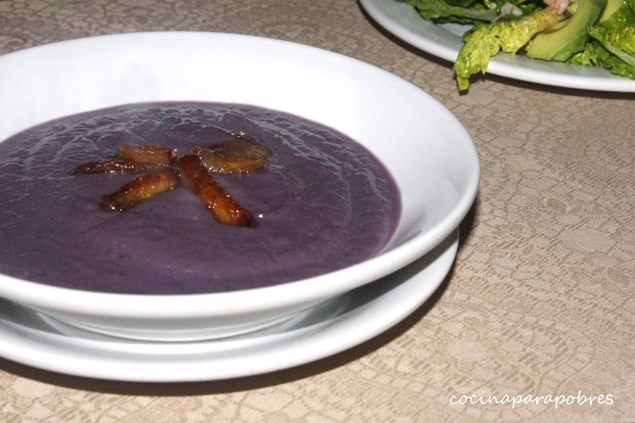 1 cucharadita de mantequillaEn una olla con un poco de aceite pochamos el ajo picado junto al puerro también picado y la col lombarda cortada en tiras finas; dejamos rehogar aproximadamente 10 minutos.