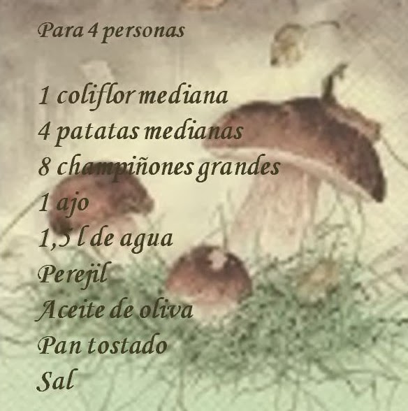 Ahora que estamos en temporada de coliflor, de septiembre a febrero, qué mejor que hacer una crema bien suave. Sola con unas patatas está bien buena pero si le añadimos unos champiñones salteados ya está de rechupete.