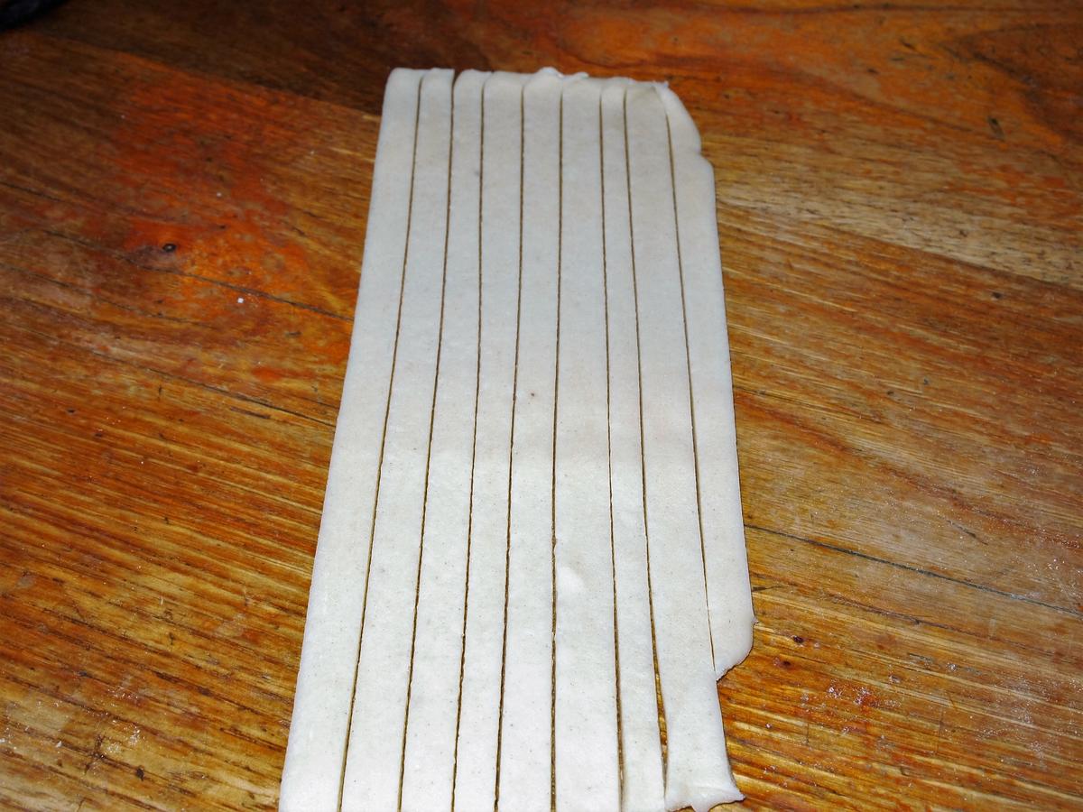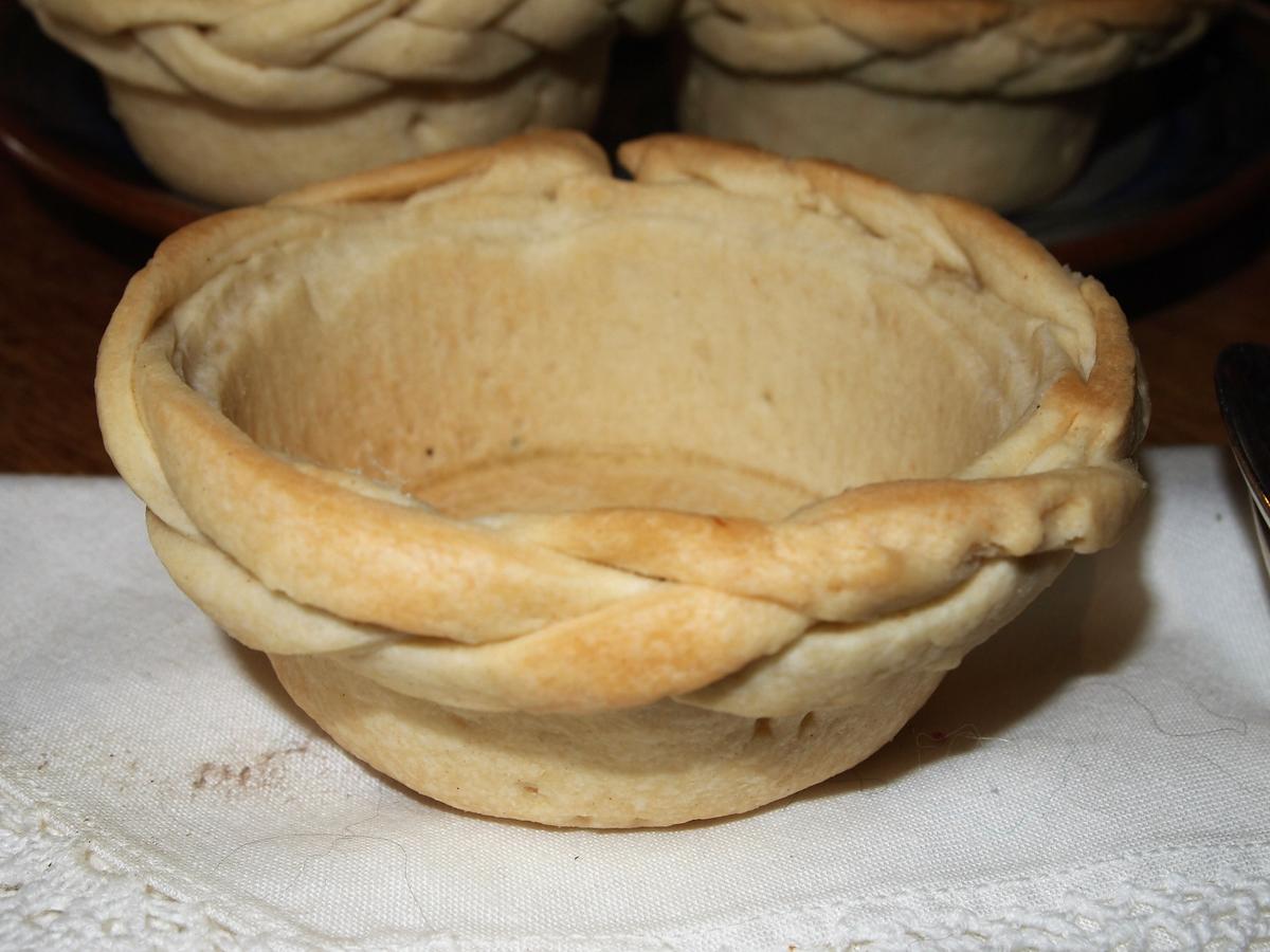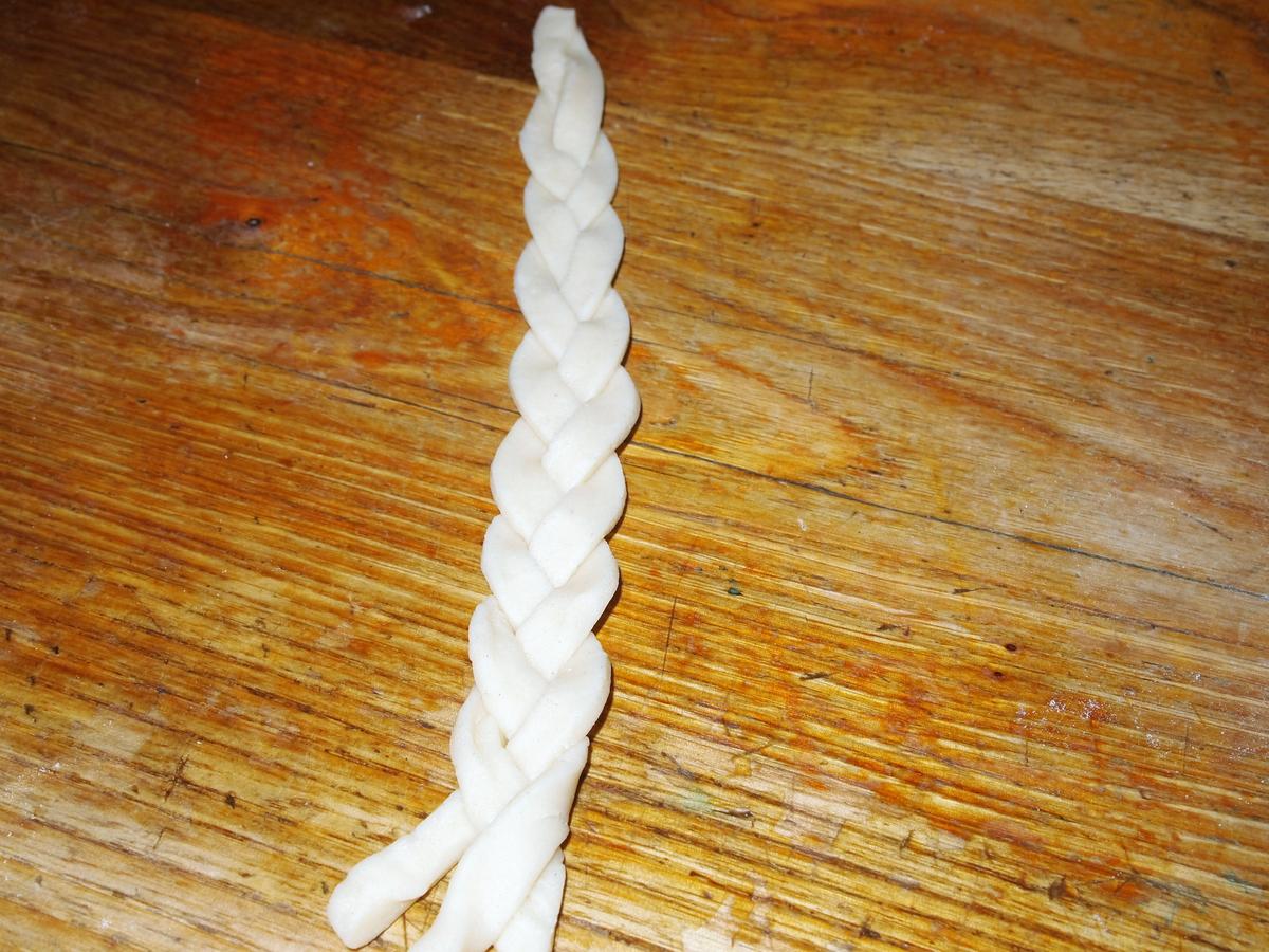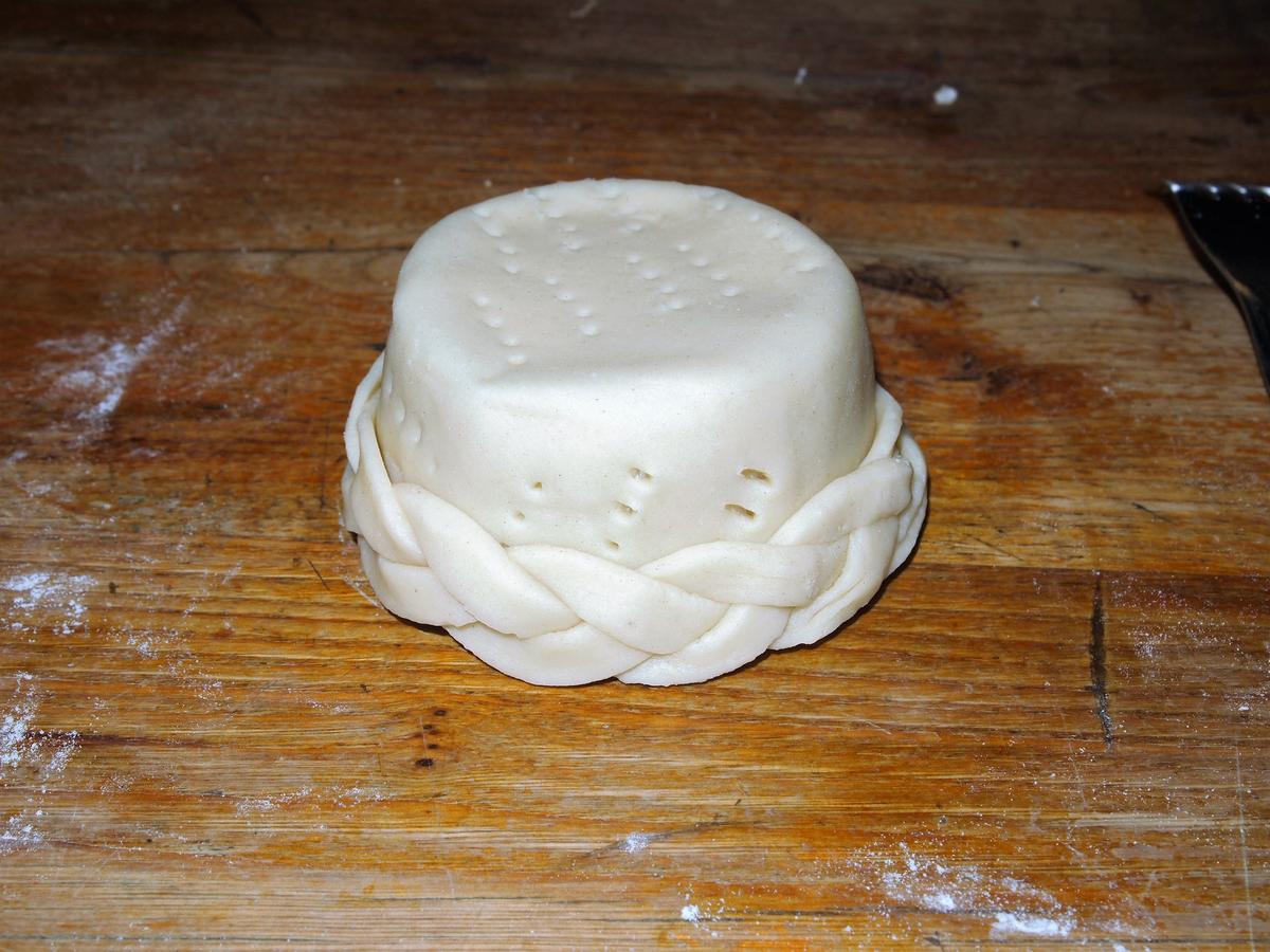 Con los sobrantes de la masa, estiramos tres tiras y formamos una trenza que pegaremos con ayuda de un poco de agua en el borde de nuestros cuencos.