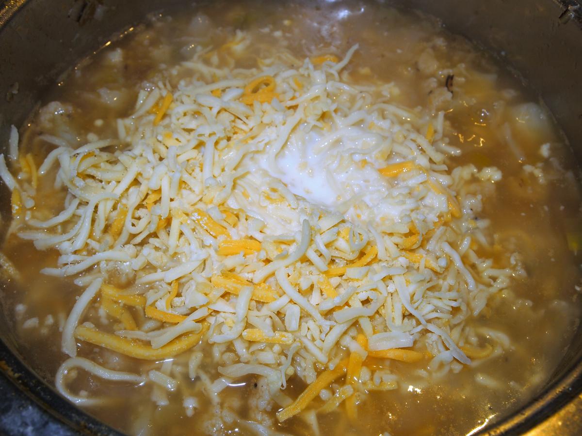 Pasado ese tiempo añadimos el queso y la leche y dejamos cocer 2 minutos a fuego lento removiendo para que no se nos salga.