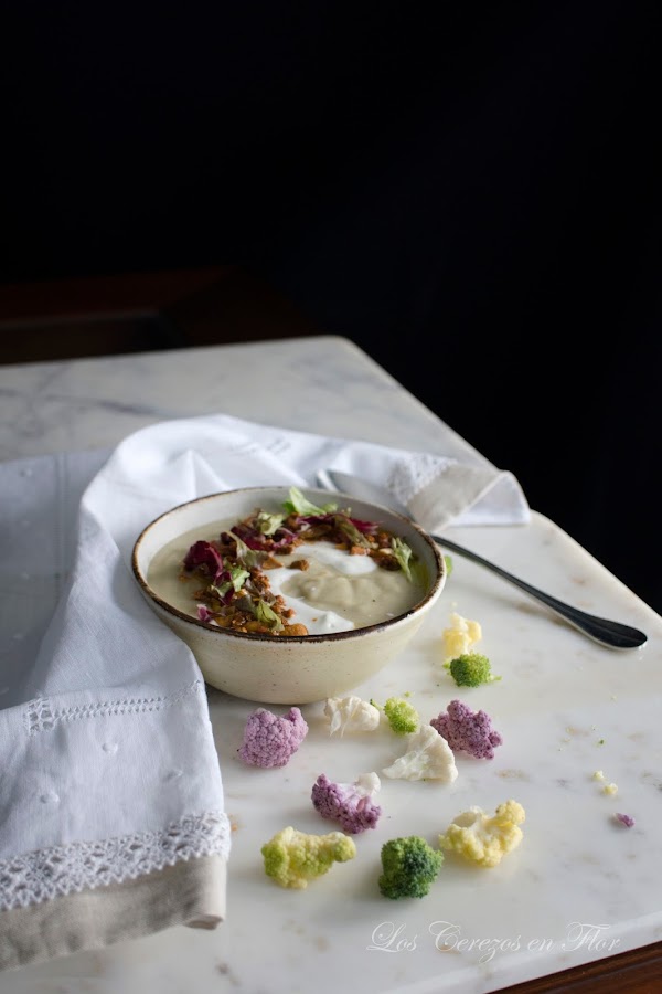 Nada como una buena, calentita y deliciosa crema de coliflor para superar estos días de frío invierno. Y nada mejor que aprovechar los productos de temporada para hacerla por cuatro duros. Lo cierto es que estas últimas semanas lo único que he comido han sido sopas y cremas de todo tipo. Una neumonía me ha mantenido alejada de la cocina, de los míos, de la fotografía y de salir a la calle. Más de tres semanas en cama sin ganas de nada...bueno, no ha sido así en realidad, porque durante todo ese tiempo no he hecho otra cosa que pensar en recetas, futuras entradas y nuevos proyectos que ya desvelaré en su momento. Mientras tanto vamos a centrarnos en la receta de hoy, aunque casi un mes más tarde de lo que tocaba jajaja, más vale tarde que nunca no?.