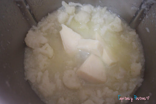 Por último añadimos los quesitos y cuando baje la temperatura, trituramos.