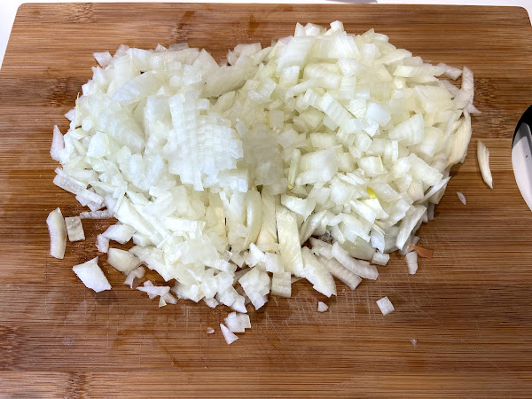 En primer lugar picamos los ajos.1 cebola picada muy fina.