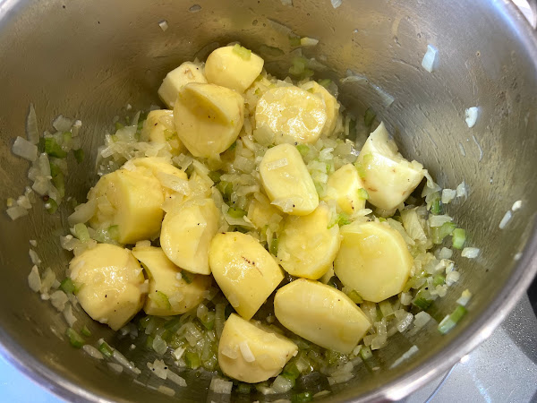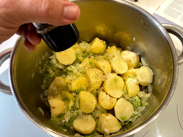 Introducimos las patatas a la cazuela.