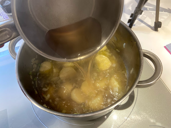 Incorporamos el caldo caliente.