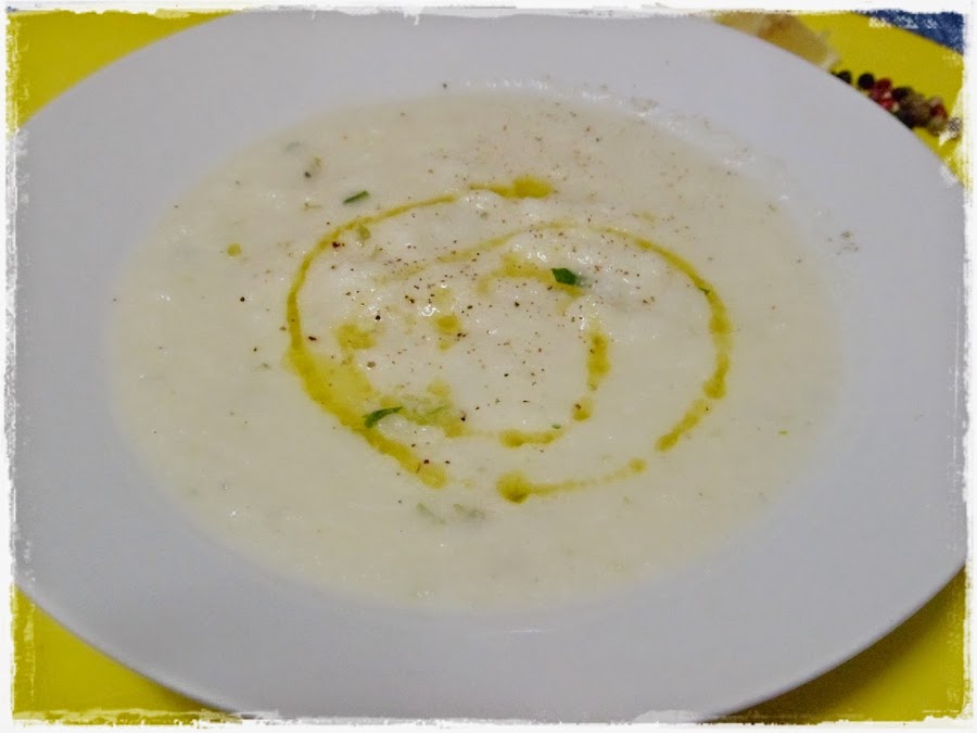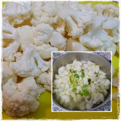 Limpia la coliflor, quita las hojas verdes (si las tiene), y pártela en trocitos (cuanto más pequeños sean, menos tiempo tenemos que cocerla, y menos energía consumiremos). Ponla en un cazo junto con la leche y la margarina y un poco de perejil y añade agua (que no cubra totalmente la coliflor) y ponlo a fuego medio unos 8 minutos o hasta que esté blanda (no esperes hasta que se deshaga, pues un exceso de cocción hace que los vegetales pierdan gran parte de sus propiedades). Una vez cocida, incorpora un espolvoreo al gusto de sal y pimienta; remueve y tritura con la batidora hasta que quede una crema espesa. Si una vez cocida ves que quizás tenga mucho caldo, quítale un poco antes de triturar y añádeselo poco a poco, según sea necesario, porque la idea es que quede cremosa.
