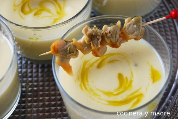 Y ya tenemos lista esta deliciosa crema de espárragos blancos con berberechos.