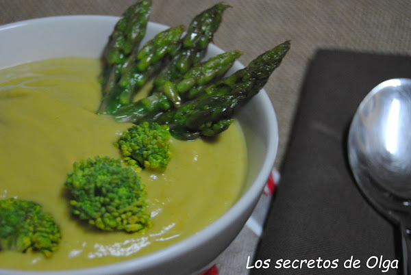 Hoy os traigo otra crema de verduras que me ha encantado. Toda ella llenita de vitaminas. El espárrago es muy diurético, contiene muy pocas calorías y gran contenido en fibra por lo que resulta ideal para dietas de adelgazamiento. El brócoli por su parte es rico en hierro, por lo que es ideal para combatir la anemia.