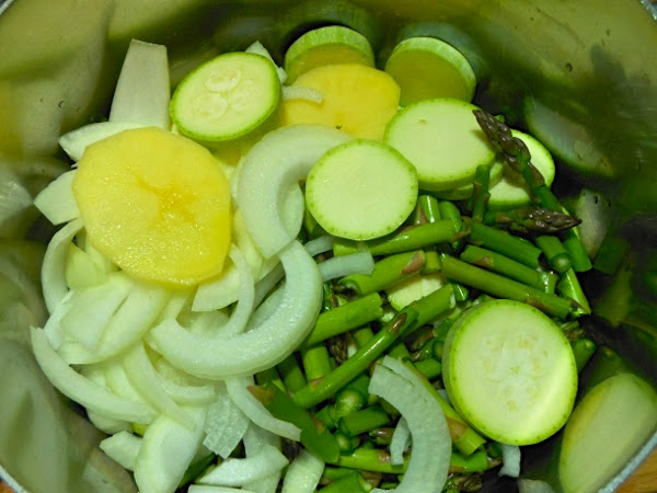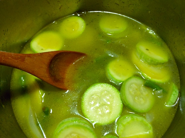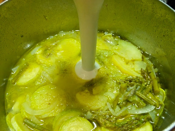 Seguidamente añade el medio litro de caldo de pollo y deja cocer el conjunto por espacio de 10 minutos o hasta que todas las hortalizas estén tiernas.