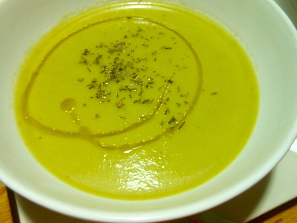 Sirve la crema caliente, rociada con un poco de aceite de oliva "virgen extra" y espolvoreada con estragón seco.